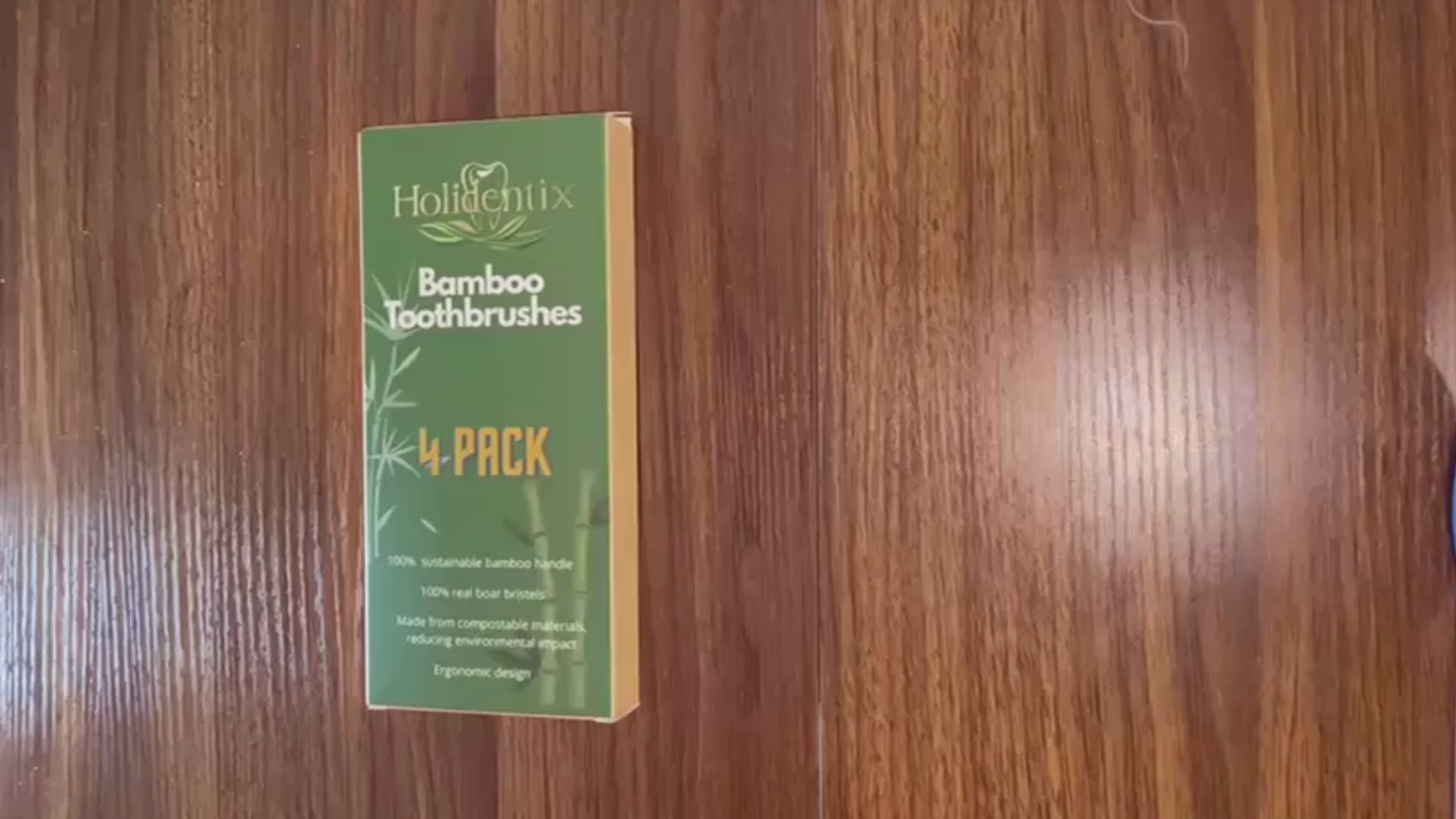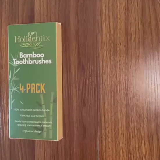 Holidentix Manual Toothbrush, Bamboo Handle, Boar Bristles, Biodegradable, Plastic-FreeBamboo Self Standing Toothbrushes.